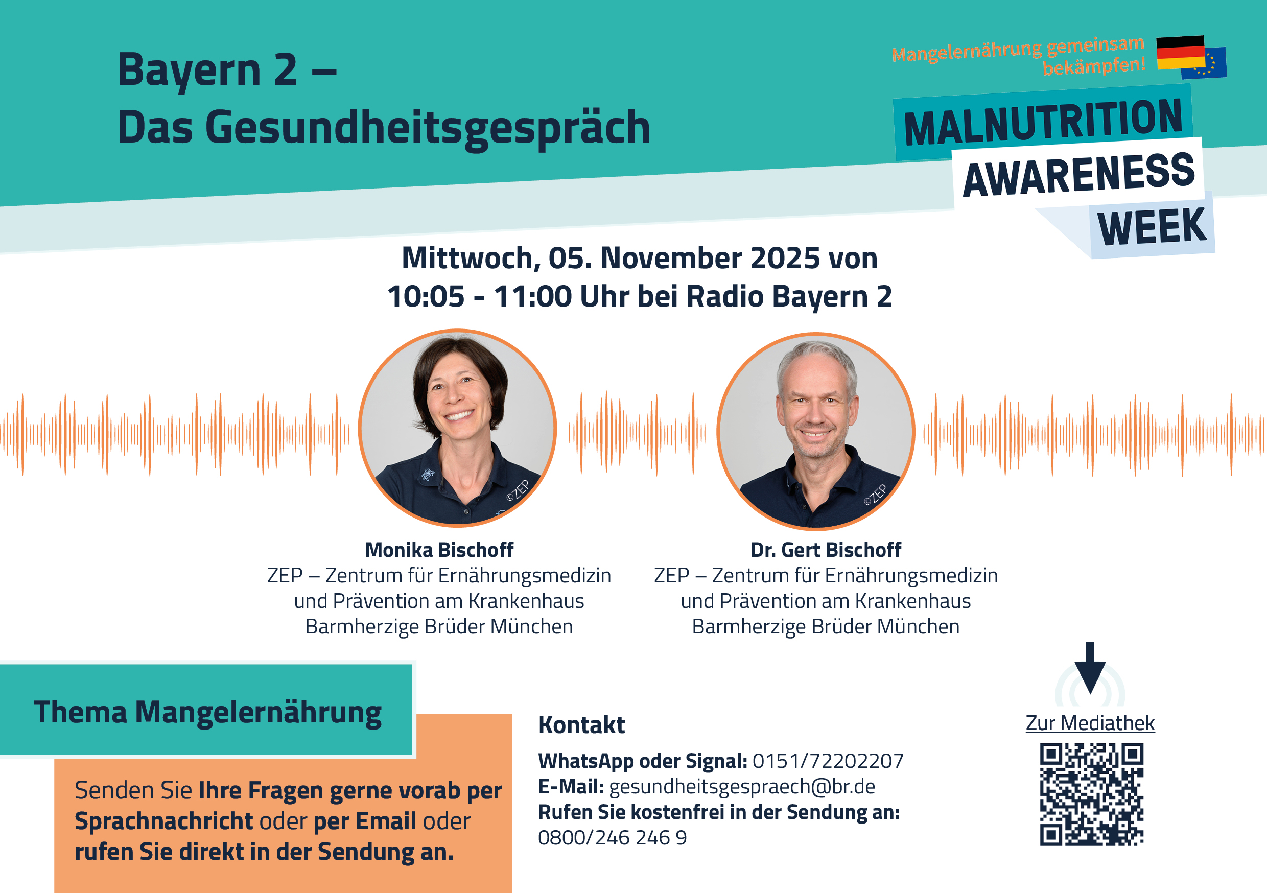 Um politische Entscheidungsträger:innen, Expert:innen verschiedener Fachbereiche und Patient:innen sowie deren Angehörige für dieses gesamtgesellschaftlich wichtige Thema zu sensibilisieren und den Forderungen Nachdruck zu verleihen, findet in der Woche vom 10. bis 14. November 2025 die 3. Malnutrition Awareness Week (MAW) in Deutschland statt..